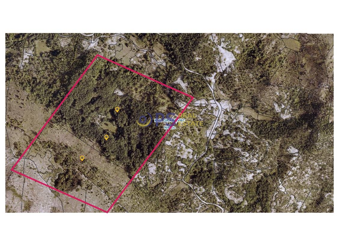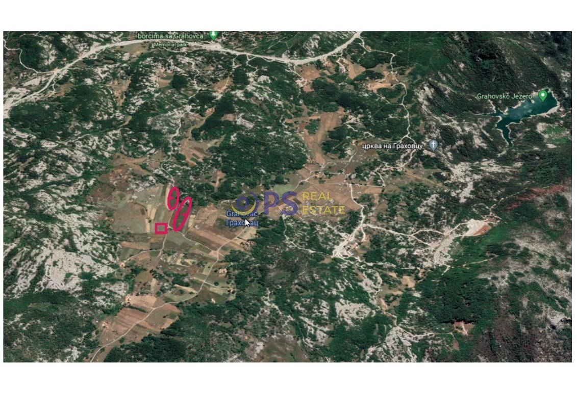 Prodaje se hrastova šuma od 140.339 m2, oranica od 9.849 m2, livada 11.672 m2 i livada od 2.741 m2. Lokacija zemljišta je na 400-500 m od magistralnog puta Grahovo-Vilusi, na nadmorskoj visiniod 1000 m. Imanje je3 pogodno  za cjelogodišnji život na selu, ili izgradnja eko katuna, etno sela. Šuma je najkvalitetnijeg tipa. Priključak za električnu energiju je na 50-70 m udaljenosti. Oranica je pogodna za proizvodnju ekološke i organske hrane. Moguće je baviti se stočarstvom. Velika livada se redovno kosi i u njenom zaleđu je  hrastova šuma., a sama oranica se dijeli sa lokalnim putem gdje su stubovi sa priključkom na elektro mrežu.. Ima mogućnosti snadbijevanja površinskom vodom ili gradnja bbistijerni.