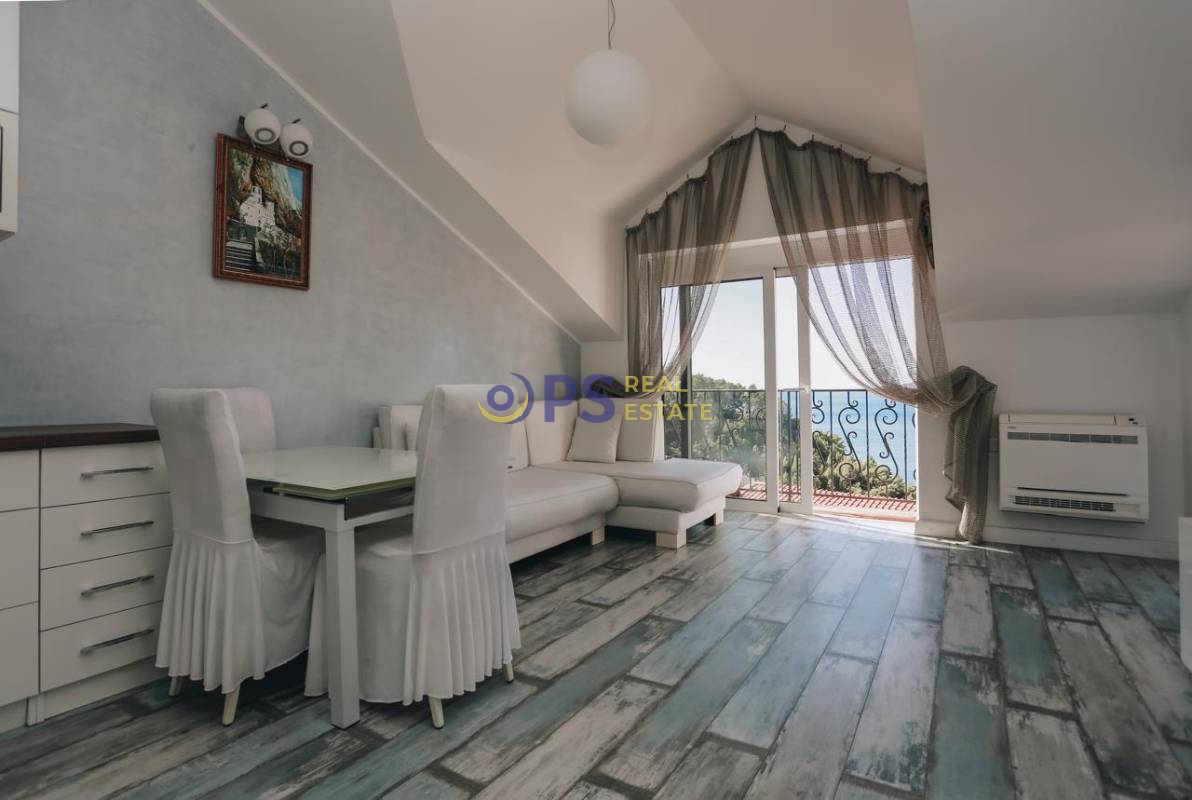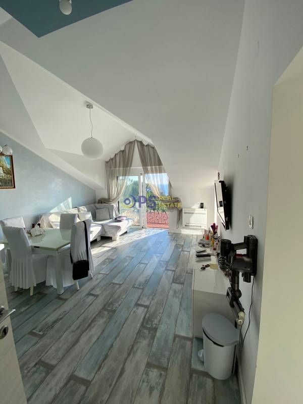 Prodaja, četvorosoban stan na St Stefanu od 82 m2 sa terasom od 10 m2 . Stan se nalazi na odličnoj lokaciji sa fanstatičnim pogledom na cijeli zaliv. Nalazi se u podkrovlju zgrade.