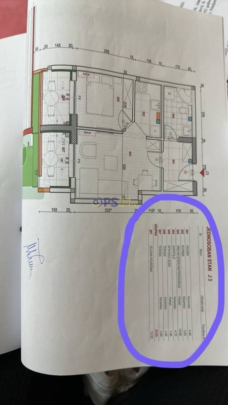 -hodnika, dnevne sobe sa kuhinjom, trpezarijom, kupatilo, spavaca soba i terasa
